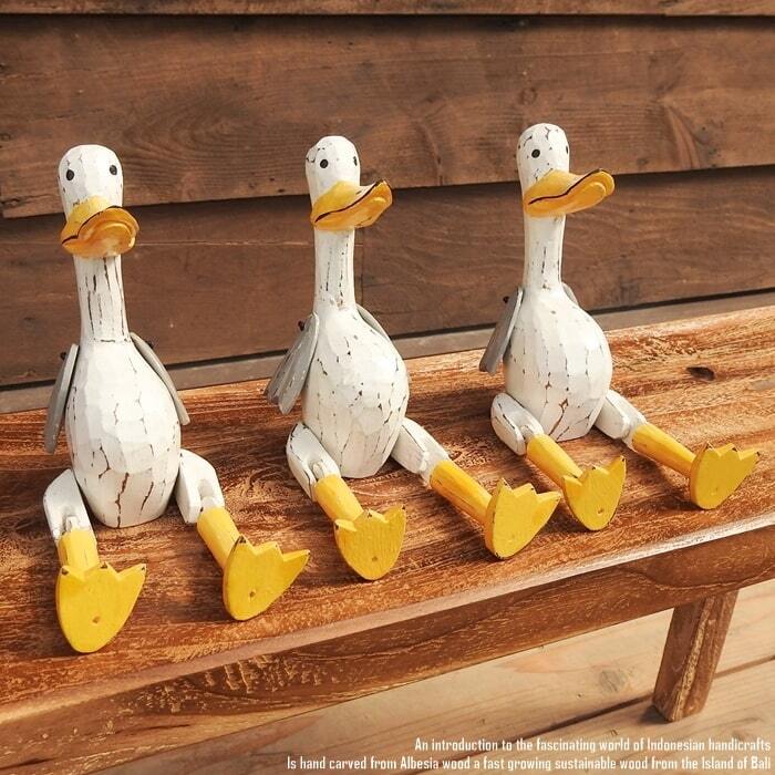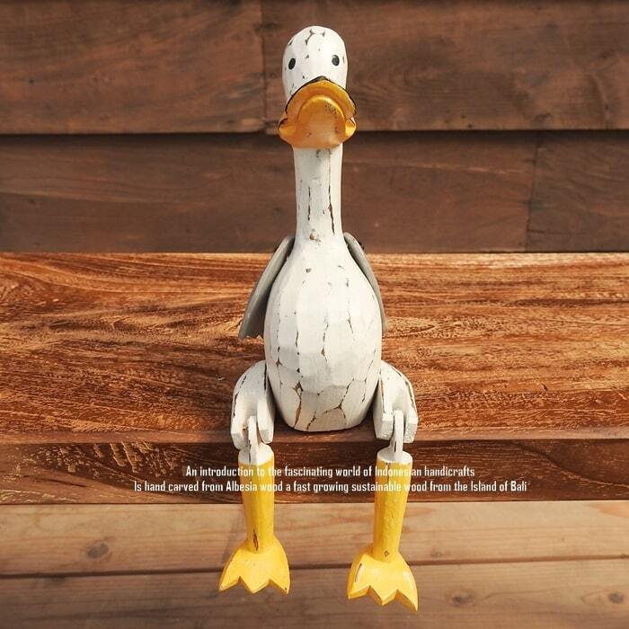 お座り アヒルさん 白 Sサイズ 手足が動かせる木彫りの動物 ウェルカム人形 家鴨 あひる 木製 ウッド 天然木 木彫りの置物 ハンドメイド 動物インテリア バリ雑貨 アジアン雑貨 動物置物 木製オブジェ エスニック アジアンインテリア バリ島