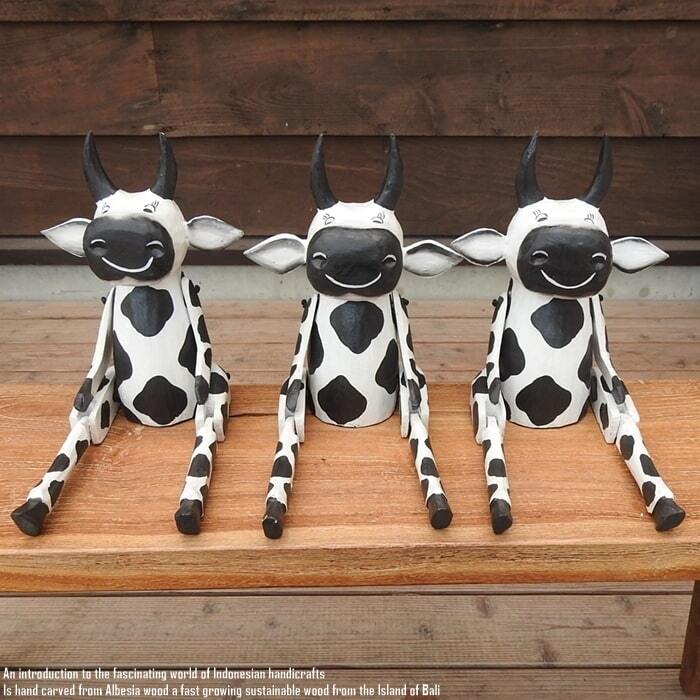 お座り うしさん Lサイズ 手足が動かせる木彫りの動物 ウェルカム人形 牛 うし 木製 ウッド 天然木 木彫りの置物 ハンドメイド 動物インテリア バリ雑貨 アジアン雑貨 動物置物 木製オブジェ エスニック アジアンインテリア バリ島