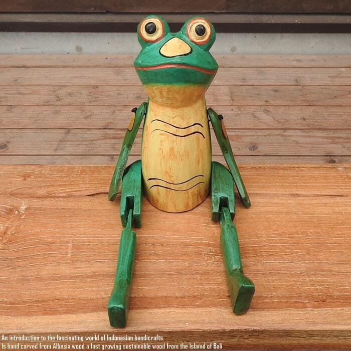 お座り カエルさん 黄色 Mサイズ 手足が動かせる木彫りの動物 ウェルカム人形 蛙 かえる 木製 ウッド 天然木 木彫りの置物 ハンドメイド 動物インテリア バリ雑貨 アジアン雑貨 動物置物 木製オブジェ エスニック アジアンインテリア バリ島