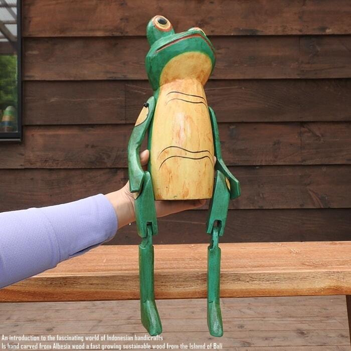 お座り カエルさん 黄色 Lサイズ 手足が動かせる木彫りの動物 ウェルカム人形 蛙 かえる 木製 ウッド 天然木 木彫りの置物 ハンドメイド 動物インテリア バリ雑貨 アジアン雑貨 動物置物 木製オブジェ エスニック アジアンインテリア バリ島