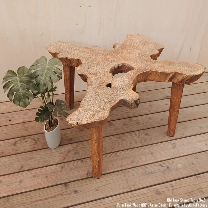 個性的な形が特徴的な天然オールドチーク材の切り株をそのまま利用したちゃぶ台です。
