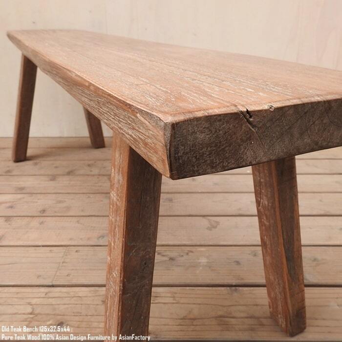チーク材の中でもオールドチークは古い家屋を解体した木材などを利用した材料で、充分に乾燥し、若い木材より堅牢で独特の風合いがあります。