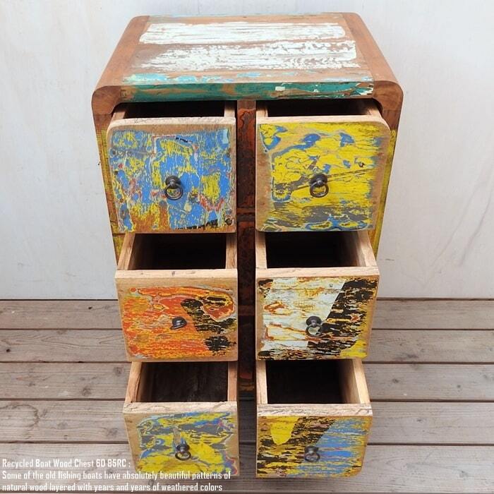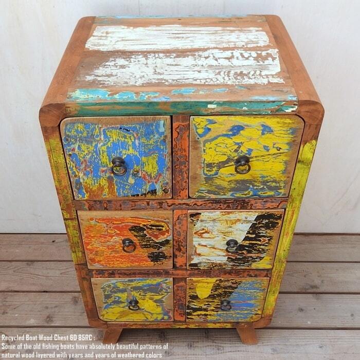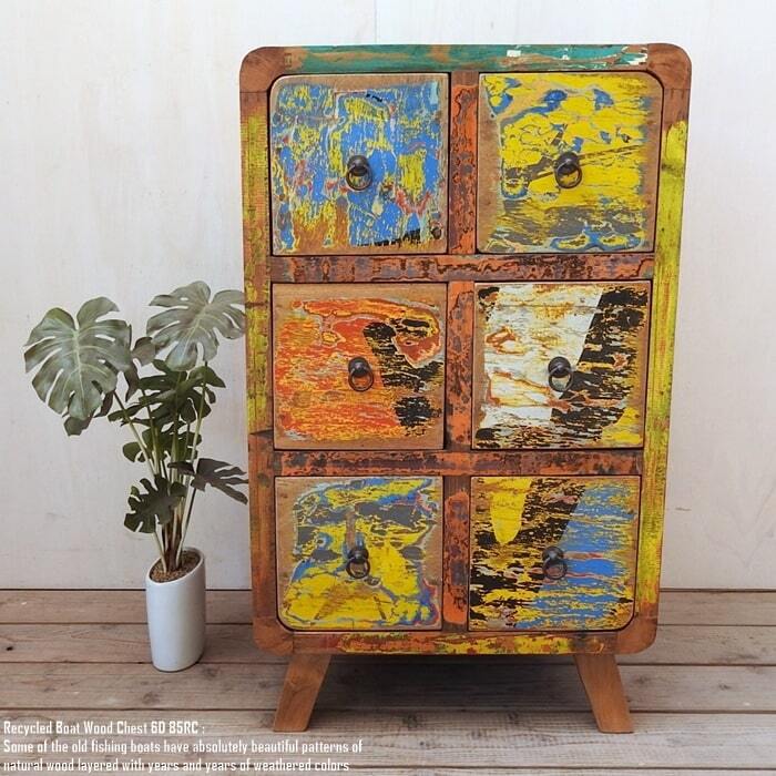 一点物 ボート古材 チェスト 6D85RC-I ボートウッド 船古材 ボート再生家具 古材 リサイクルウッド リユース木材 アンティーク 無垢材 アジアン家具 ハンドメイド 手作り 完成品 バリ家具 収納家具 サイドテーブル コンソール 箪笥 店舗什器 業販 卸