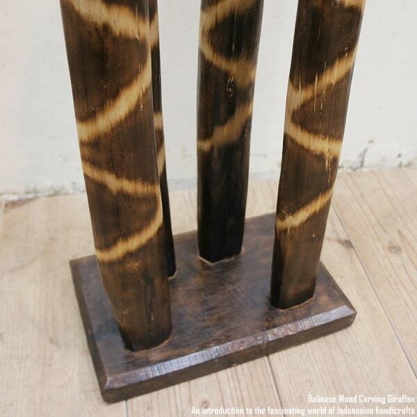 バリ島の職人さんが1頭ずつガスバーナーであぶってキリン特有の模様を描いています。