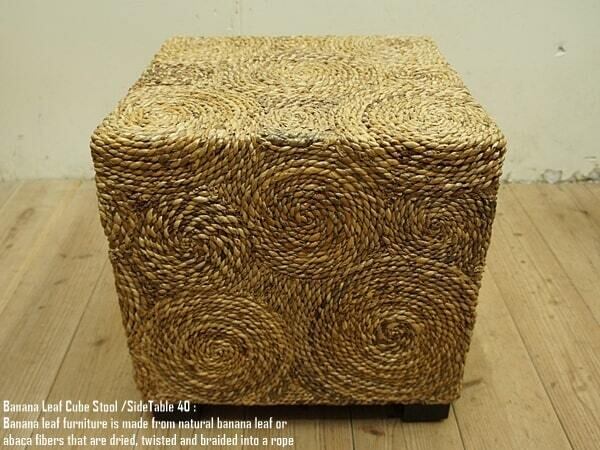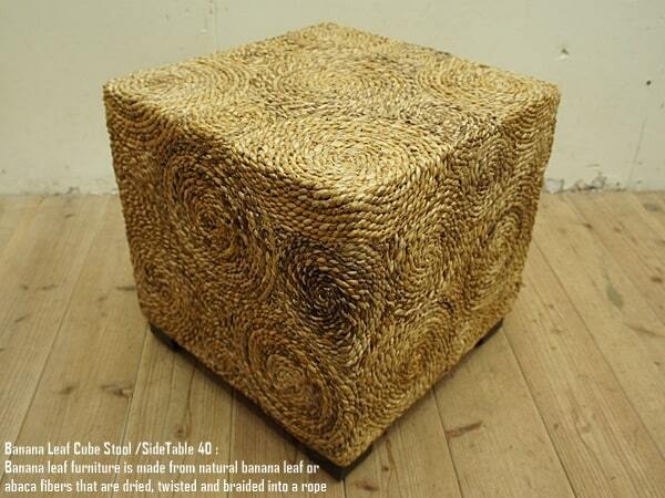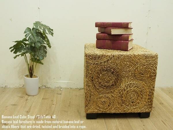 天然素材のバナナの葉で編み込まれた座面を使用し、癒しとアジアな雰囲気を醸し出した四角いスツールです。