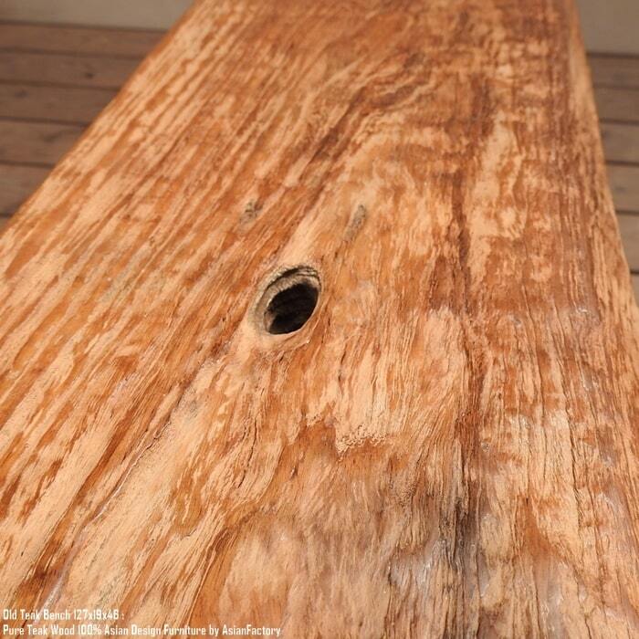 チーク材の中でもオールドチークは古い家屋を解体した木材などを利用した材料で、充分に乾燥し、若い木材より堅牢で独特の風合いがあります。