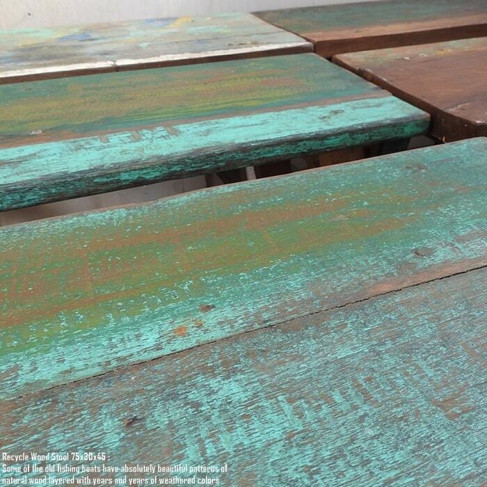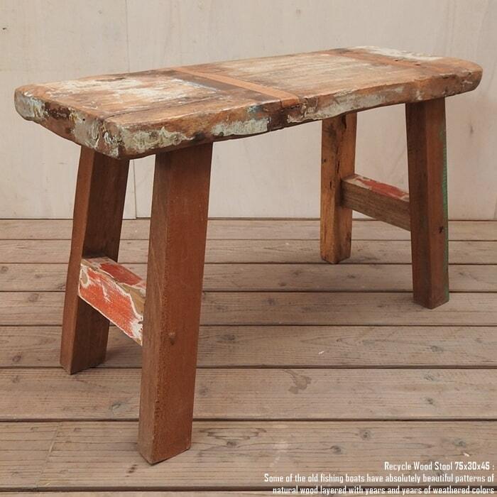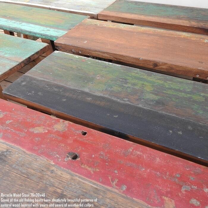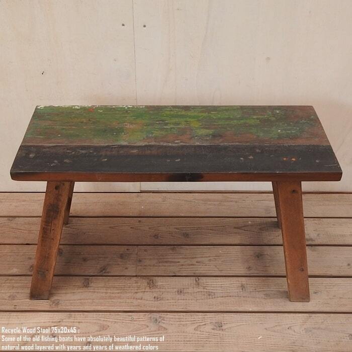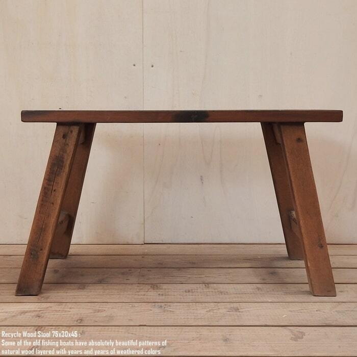 スツール 75cm 長方形 古材 リサイクルウッド 椅子 ベンチ 飾り台 花台 イス 木 木製 サイドテーブル ボートウッド 船古材 ボート再生家具 リユース木材 アンティーク 無垢材 アジアン家具 ハンドメイド 手作り 完成品 バリ家具 チーク