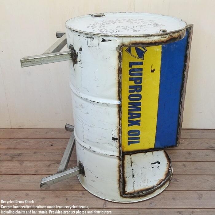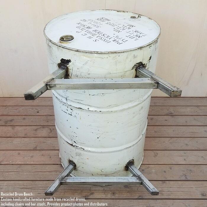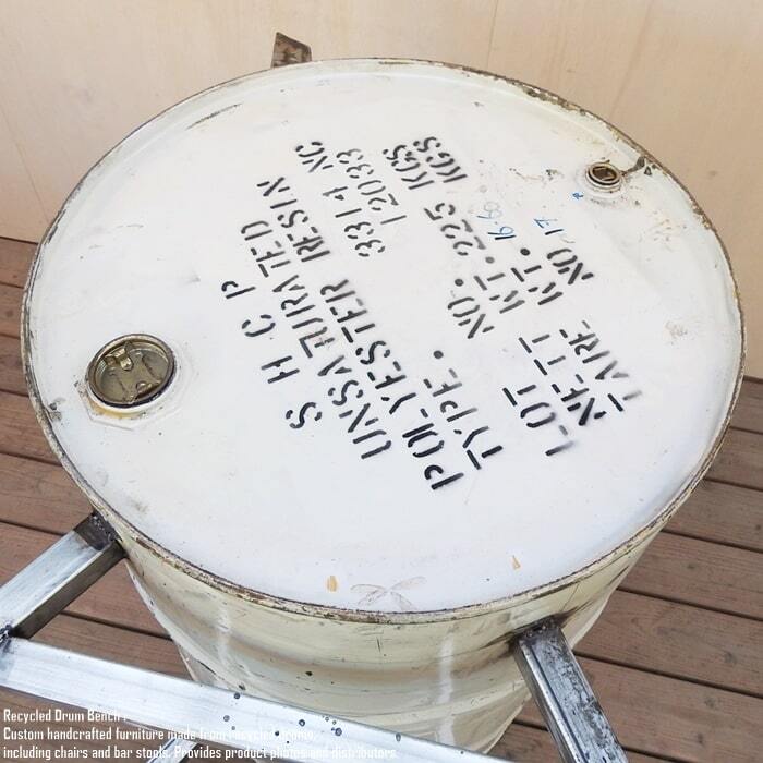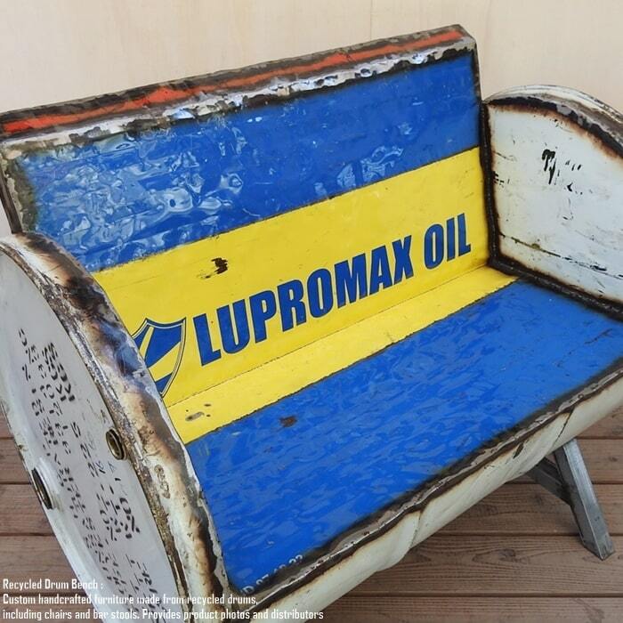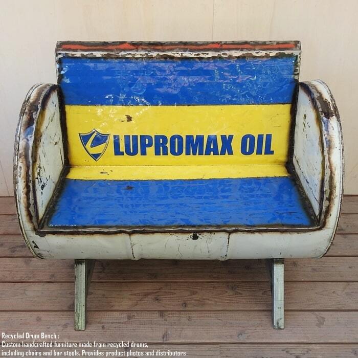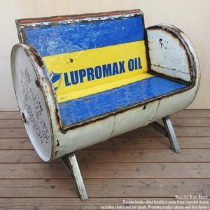 ドラム缶をリメイクしたベンチ 2P L 2人掛け 1.5人掛け 1人掛け スチール椅子 リメイク家具 工業系 男前家具 鉄脚 店舗什器 ドラム缶チェア ソファー アイアンチェア リサイクル 古材 デザイン家具 いす 業販 卸