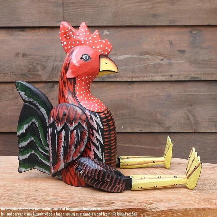 お座り ニワトリさん Lサイズ 手足が動かせる木彫りの動物 ウェルカム人形 鶏 にわとり 鳥 木製 ウッド 天然木 木彫りの置物 ハンドメイド 動物インテリア バリ雑貨 アジアン雑貨 動物置物 木製オブジェ エスニック アジアンインテリア バリ島