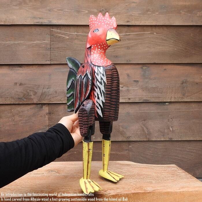 バリ島の職人さんが1点ずつ手彫りして手塗りした、お座りニワトリさんのLサイズモデルです。