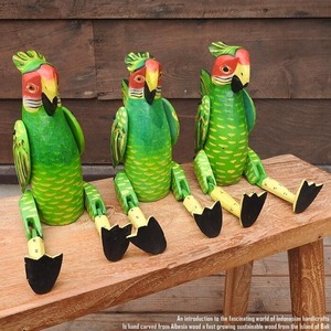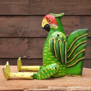 お座り オウムさん Mサイズ 手足が動かせる木彫りの動物 ウェルカム人形 鳥 木製 ウッド 天然木 木彫りの置物 ハンドメイド 動物インテリア バリ雑貨 アジアン雑貨 動物置物 木製オブジェ エスニック アジアンインテリア バリ島
