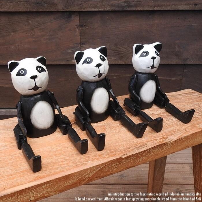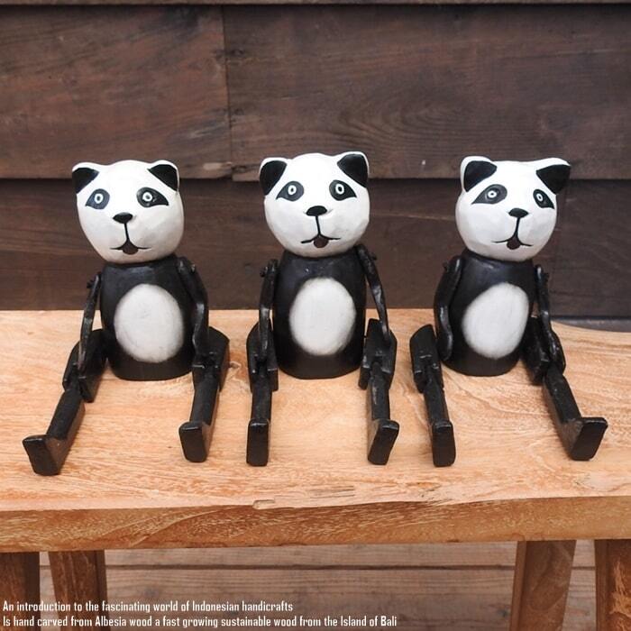 お座り パンダさん Sサイズ 手足が動かせる木彫りの動物 ウェルカム人形 ぱんだ 木製 ウッド 天然木 木彫りの置物 ハンドメイド 動物インテリア バリ雑貨 アジアン雑貨 動物置物 木製オブジェ エスニック アジアンインテリア バリ島