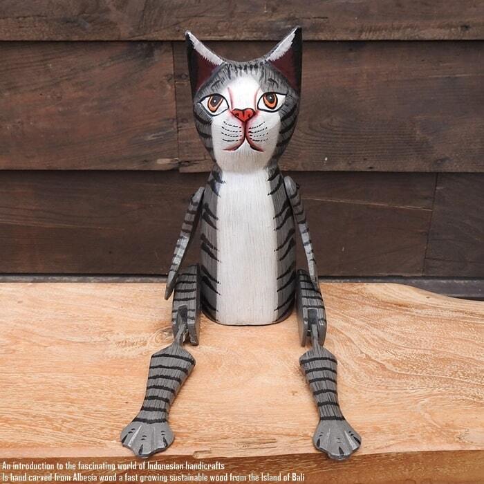 お座り ネコさん Lサイズ 手足が動かせる木彫りの動物 ウェルカム人形 ねこ 猫 木製 ウッド 天然木 木彫りの置物 ハンドメイド 動物インテリア バリ雑貨 アジアン雑貨 動物置物 木製オブジェ エスニック アジアンインテリア バリ島