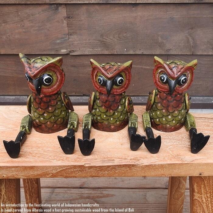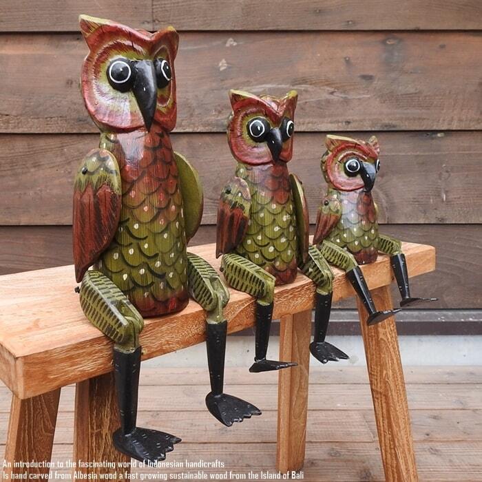 お座り フクロウさん Sサイズ 手足が動かせる木彫りの動物 ウェルカム人形 ふくろう 鳥 木製 ウッド 天然木 木彫りの置物 ハンドメイド 動物インテリア バリ雑貨 アジアン雑貨 動物置物 木製オブジェ エスニック アジアンインテリア バリ島