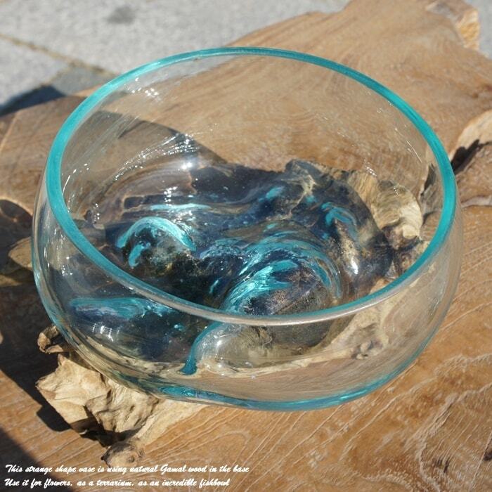 吹きガラスと天然木のオブジェB18 金魚鉢 メダカ 水槽 アクアリウム テラリウム コケリウム 花瓶 流木ガラス