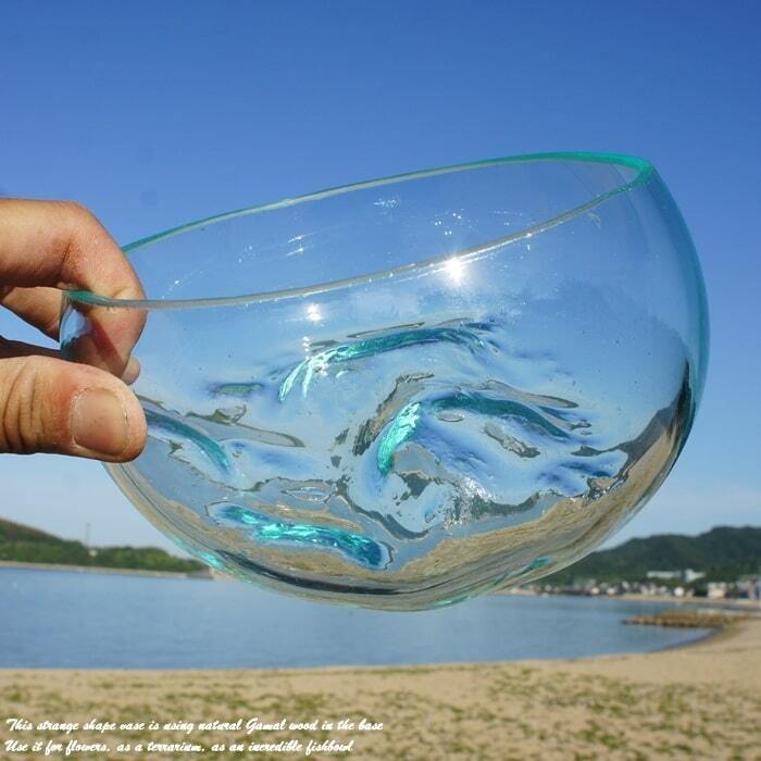 吹きガラスと天然木のオブジェB20 金魚鉢 メダカ 水槽 アクアリウム テラリウム コケリウム 花瓶 流木ガラス