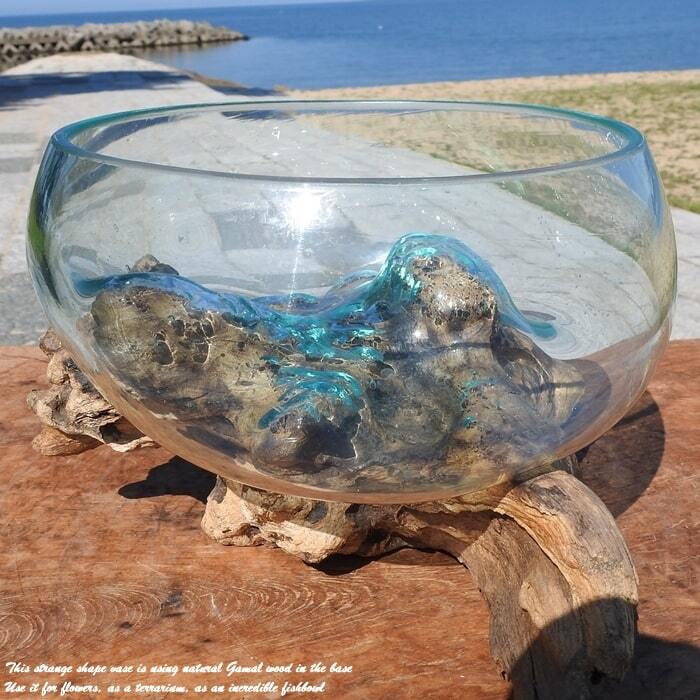 吹きガラスと天然木のオブジェB25 金魚鉢 メダカ 水槽 アクアリウム テラリウム コケリウム 花瓶 流木ガラス