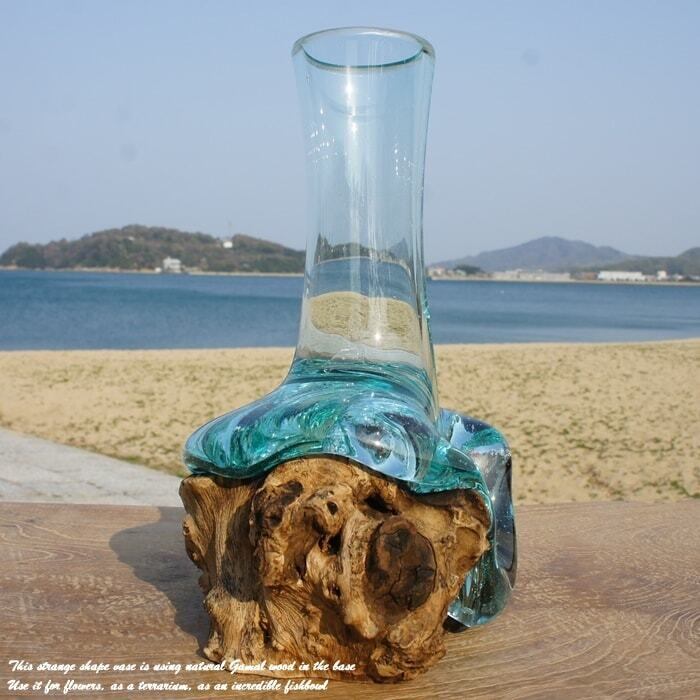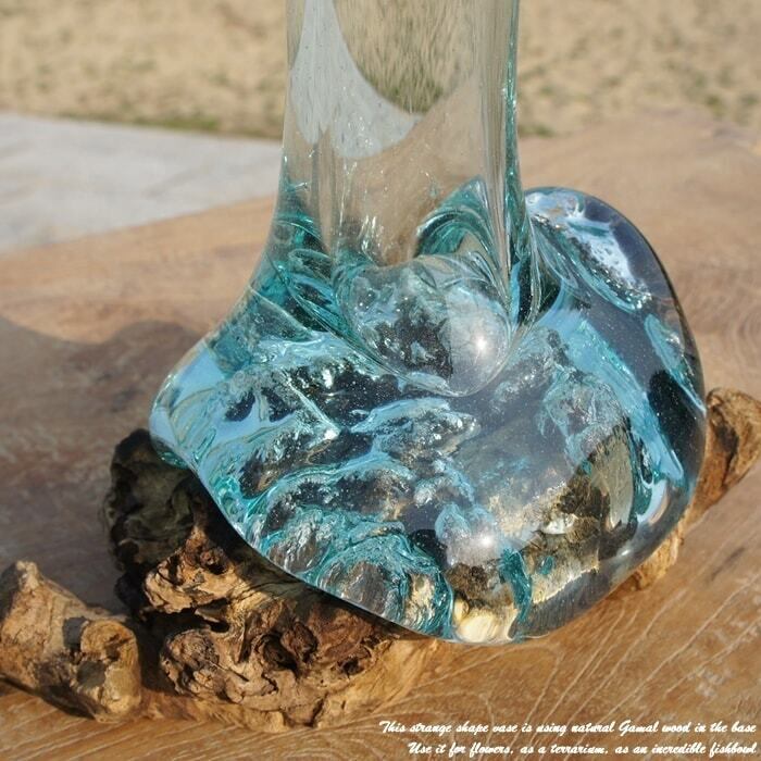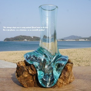 吹きガラスと天然木のオブジェV25 一輪挿し 花瓶 フラワーポット バリ島 アジアン雑貨 流木ガラス