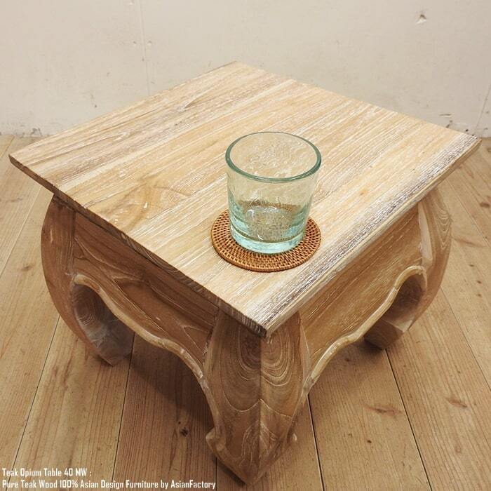 チーク無垢材 オピウムテーブル 40cm × 40cm WW ホワイトウォッシュ ちゃぶ台 アジアンテーブル ローテーブル アジアン家具 机 飾り台 花台 コーヒーテーブル 完成品 バリ家具 ウォルナット マホガニーに並ぶ高級木材 総無垢材
