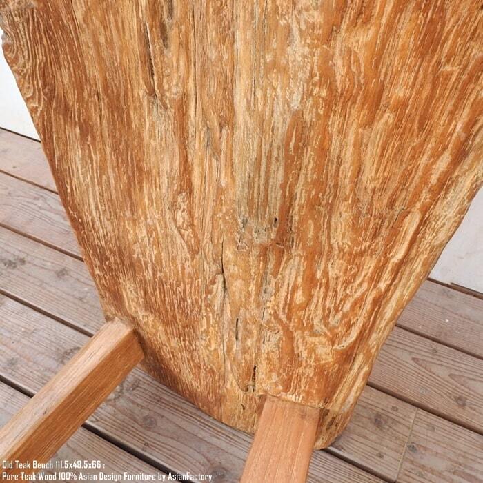 チーク材の中でもオールドチークは古い家屋を解体した木材などを利用した材料で、充分に乾燥し、若い木材より堅牢で独特の風合いがあります。