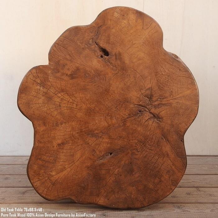 希少 オールドチーク一枚板 切り株テーブル 75cm 極厚無垢材 アジアン家具 バリ家具 飾り台 花台 ちゃぶ台 座卓 ローテーブル センターテーブル 切株テーブル ウッドテーブル 机 木 木製 古材 古木テーブル 総無垢材