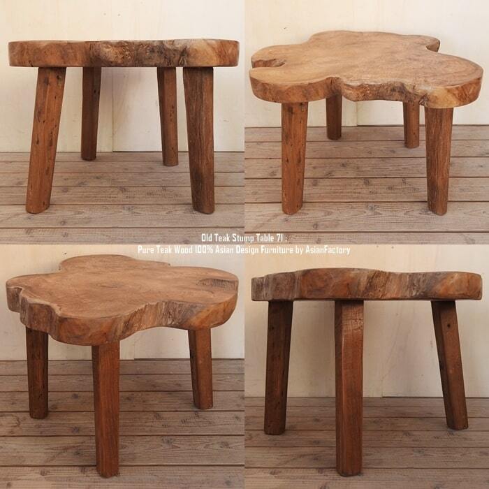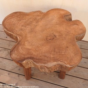 希少 オールドチーク一枚板 切り株テーブル 71cm 極厚無垢材 アジアン家具 バリ家具 飾り台 花台 ちゃぶ台 座卓 ローテーブル センターテーブル 切株テーブル ウッドテーブル 机 木 木製 古材 古木テーブル 総無垢材