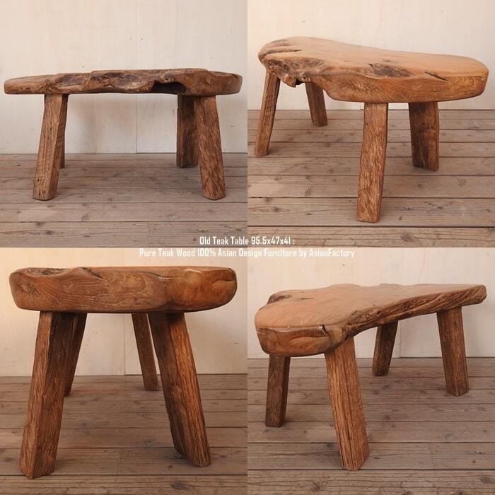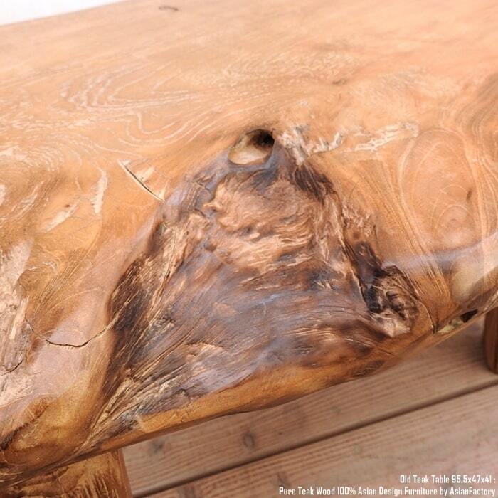 極厚オールドチーク テーブル 幅95.5cm × 奥行47cm × 高さ41cm 無垢材 ローテーブル センターテーブル 座卓 ちゃぶ台 木製 木 コーヒーテーブル アジアン家具 バリ家具