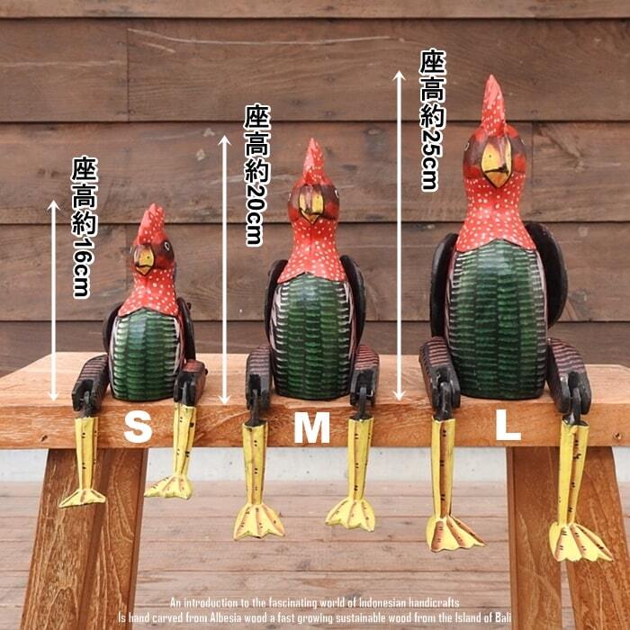 お座り ニワトリさん [2] Lサイズ 手足が動かせる木彫りの動物 ウェルカム人形 鶏 にわとり 鳥 木製 天然木 木彫りの置物 ハンドメイド 動物インテリア バリ雑貨 アジアン雑貨 動物置物 木製オブジェ エスニック アジアンインテリア バリ島