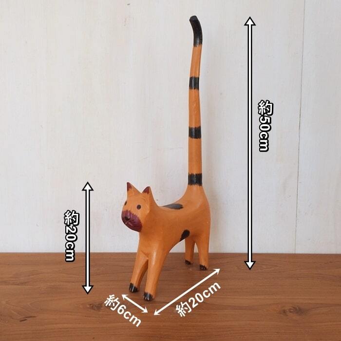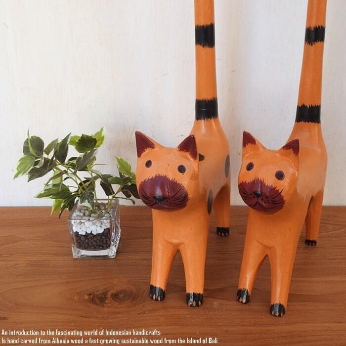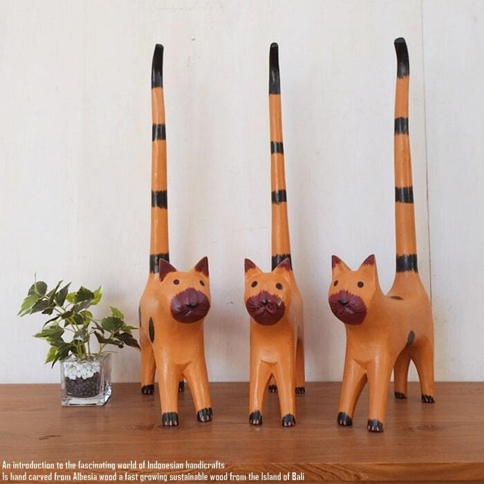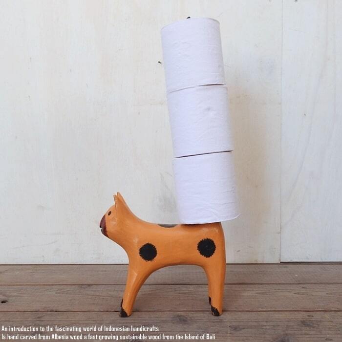 バリ島の職人さんが1点ずつ手彫りして手塗りした茶猫さんのトイレットペーパースタンドです。