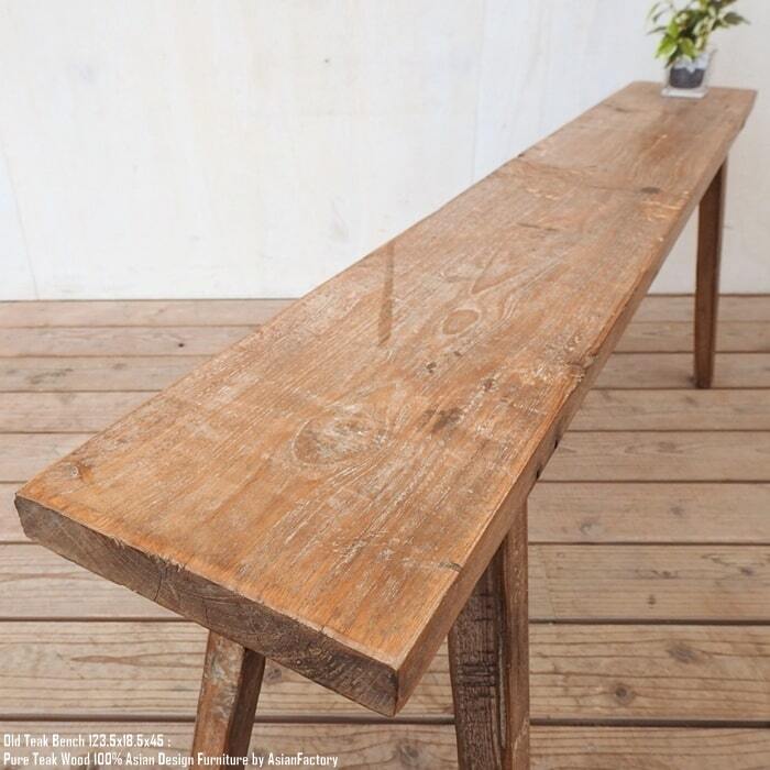 個性的なオールドチーク古材を使用したベンチ123.5cmです。