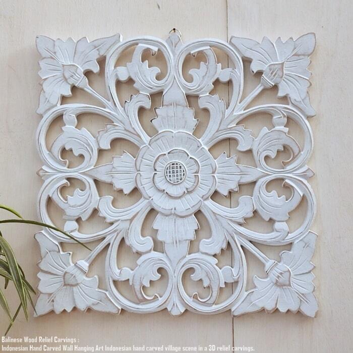 レリーフ 40cmx40cm 四角 WW ホワイトウォッシュ アートパネル 木彫り フレーム 彫刻アート 欄間 壁掛け 飾り 壁飾り アート インテリア パネル ウッドレリーフ ウッドパネル ウォールデコレーション オブジェ アジアン雑貨 バリ雑貨 バリ島 インテリア雑貨