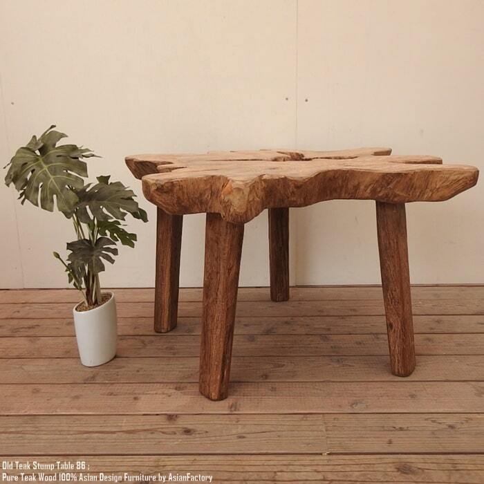 個性的な形が特徴的な天然オールドチーク材の切り株をそのまま利用したちゃぶ台です。
