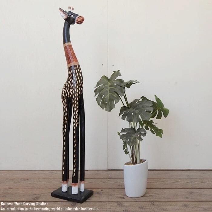 バリ島の職人さんが1点ずつ手彫りして手塗りした キリンの置物80cmモデルです。