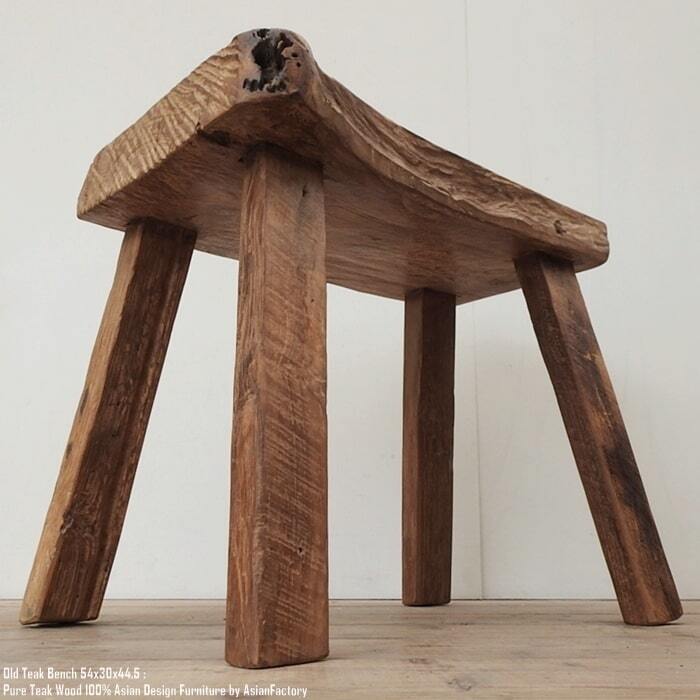 一点物 オールドチーク無垢材 スツール 54cm 木製 ベンチ 木 おしゃれ 総無垢材 一枚板 飾り台 花台 アジアン家具 長椅子 木製いす 天然木 椅子 チェア バリ家具 ウォールナット マホガニーに並ぶ高級木材 ハンドメイド アンティーク 北欧