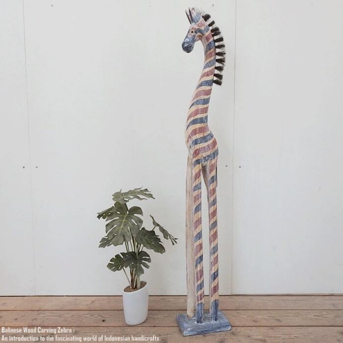 シマウマのオブジェ FR 120cm 赤 青 白 しまうま 縞馬 木彫りの動物 木彫りの置物 動物インテリア 新築祝い 結婚祝い 引越し祝い プレゼント お祝い バリ雑貨 動物置物 木製オブジェ エスニック アジアンインテリア バリ島