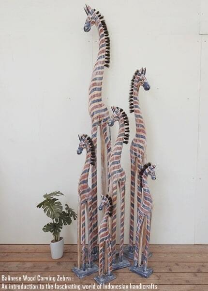 バリ島の職人さんが1頭ずつ手塗りして縞馬特有の模様を描いています。