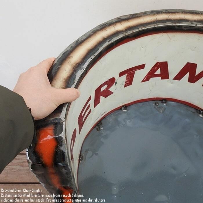 1点物 ドラム缶をリメイクしたチェア 1P L 1人掛け スチール椅子 リメイク家具 工業系 男前家具 鉄脚 店舗什器 ドラム缶チェア ソファー アイアンチェア リサイクル ドラム缶 リメイク 古材 デザイン家具 いす 業販 卸