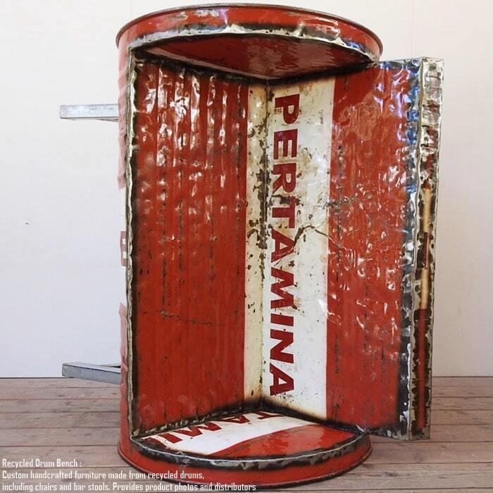 ドラム缶をリメイクしたベンチ 2P Q PERTAMINA 2人掛け 1.5人掛け 1人掛け スチール椅子 リメイク家具 工業系 男前家具 鉄脚 店舗什器 ドラム缶チェア ソファー アイアンチェア リサイクル 古材 デザイン家具 いす 業販 卸