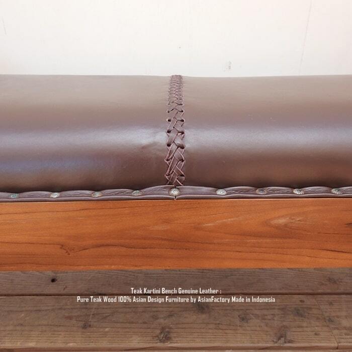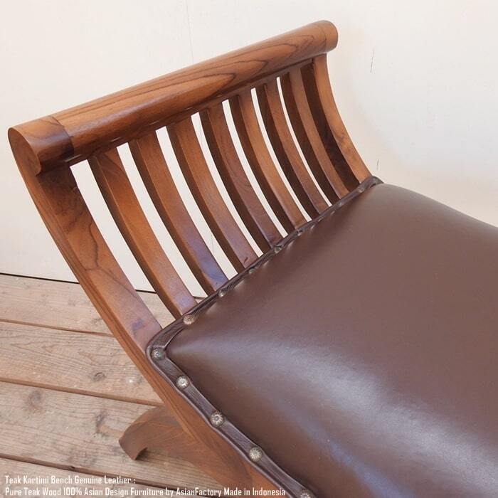 チーク無垢材 カルティニベンチ TB 牛革 本革 ナチュラルブラウン バリ家具 アジアン家具 長椅子 スツール クラブチェア 長椅子 ウォールナット マホガニーに並ぶ高級木材