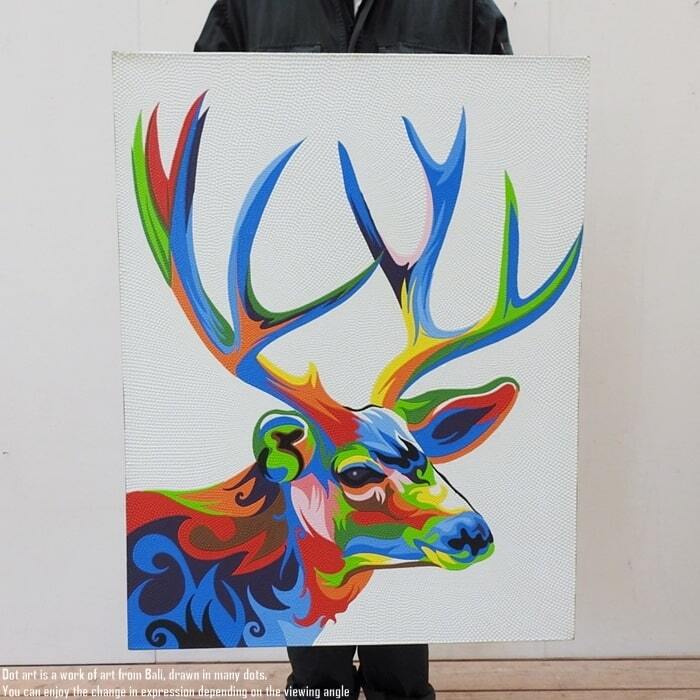 ドットアート 70cm × 90cm 鹿 ドットペインティング モダンアート アジアンアート シカ しか 手描き 絵画 アートパネル