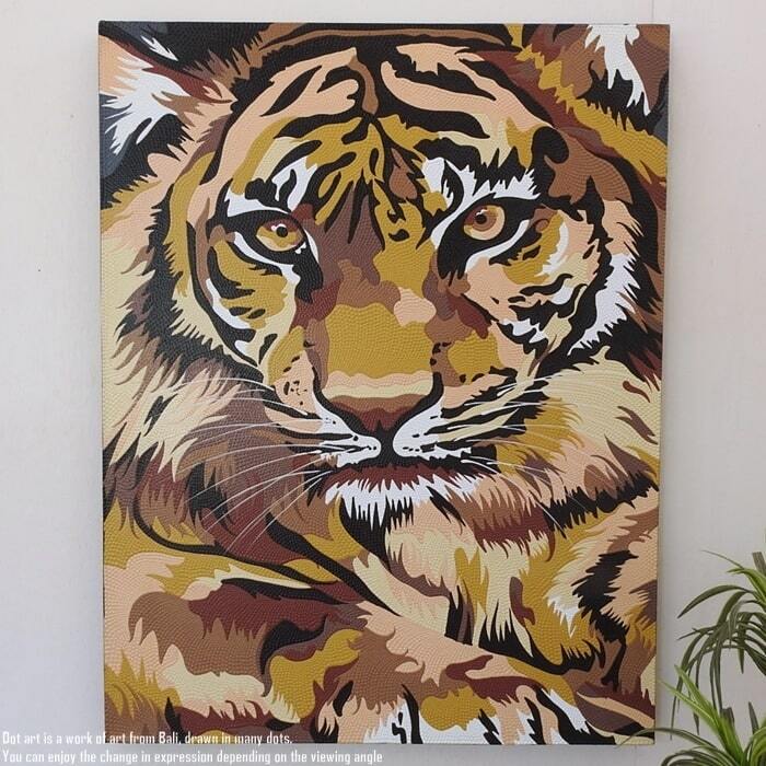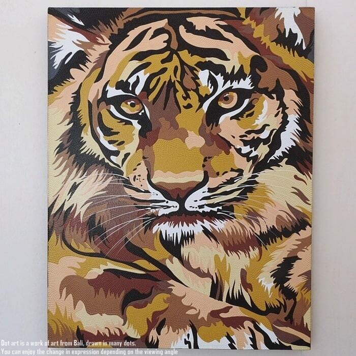 ドットアート 70cm × 90cm 虎 ドットペインティング モダンアート アジアンアート トラ とら 手描き 絵画 アートパネル バリ絵画