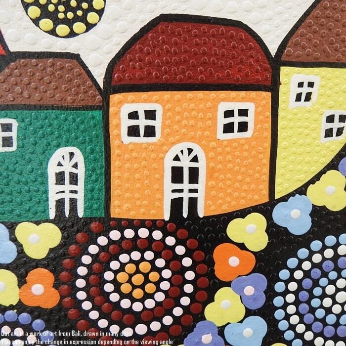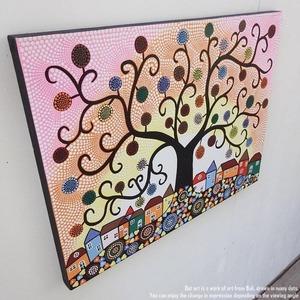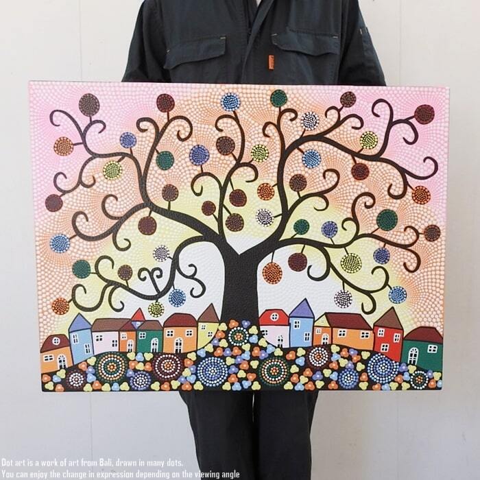 ドットアート 80cm × 60cm Town & Tree Of Life ドットペインティング モダンアート アジアンアート 手描き 絵画 アートパネル