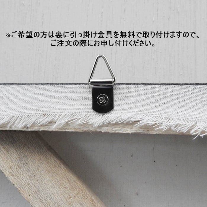 ご希望の方は裏に引っ掛け金具を無料で取り付けますので、ご注文の際にお申し付けください。