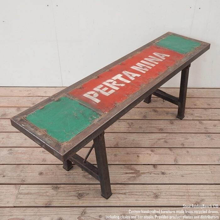 1点物 ドラム缶リサイクルベンチ B 2人~3人掛け スチール椅子 リメイク家具 工業系 男前家具 鉄脚 店舗什器 アイアンチェア リサイクル リメイク 古材 デザイン家具 いす 業販 卸 送料無料 スーパーセール