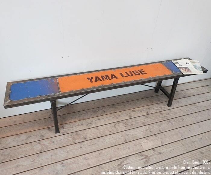 1点物 ドラム缶リサイクルベンチ 200cm A スチール椅子 リメイク家具 工業系 男前家具 鉄脚 店舗什器 アイアンチェア リサイクル リメイク 古材 デザイン家具 いす 業販 卸 送料無料 スーパーセール