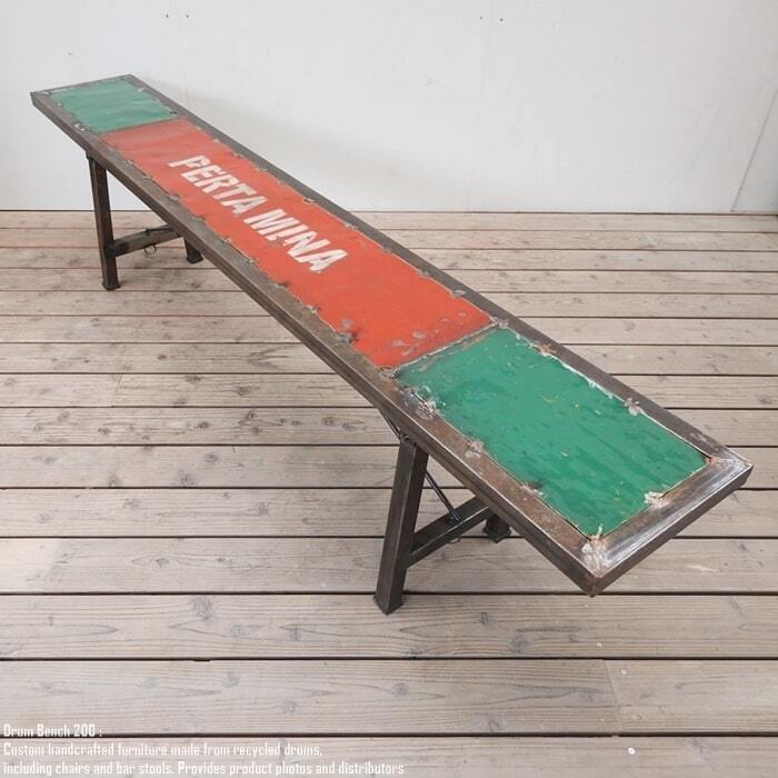 1点物 ドラム缶リサイクルベンチ 200cm B スチール椅子 リメイク家具 工業系 男前家具 鉄脚 店舗什器 アイアンチェア リサイクル リメイク 古材 デザイン家具 いす 業販 卸 送料無料 スーパーセール
