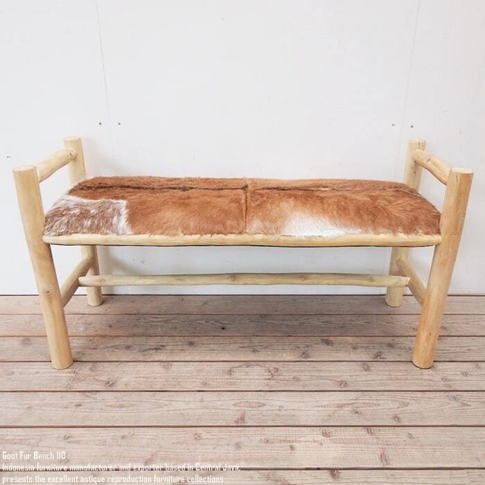 山羊毛皮 ベンチ 110cm ハラコ チェア 毛皮 天然素材 玄関 椅子 スツール ウッドスツール 腰掛 バリ家具 アジアン家具 天然木 本革 革張り