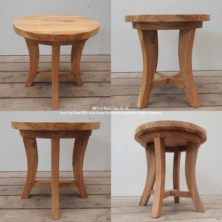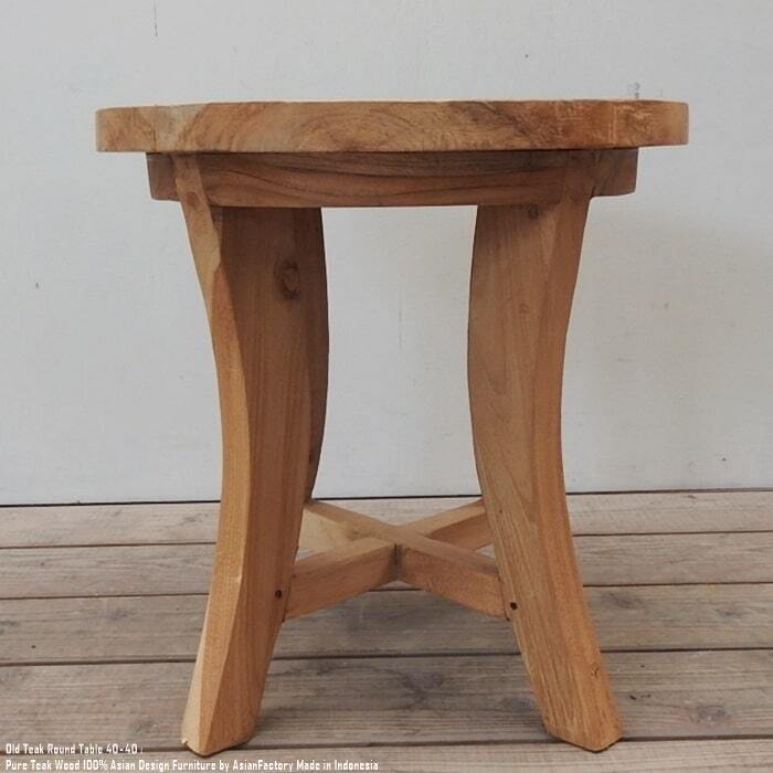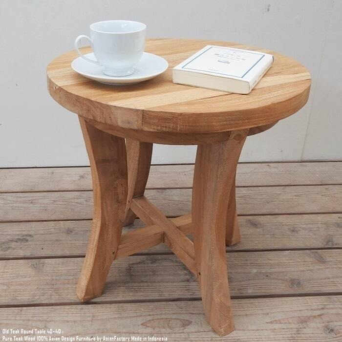 サイドテーブル 40cm オールドチーク ラウンドテーブル ナチュラル チーク材 古材 木製 ウッド 天然木 アジアン家具 チーク無垢材 バリ家具 バリ島インテリア コーヒーテーブル カフェテーブル ナイトテーブル 丸型テーブル 円卓 業販