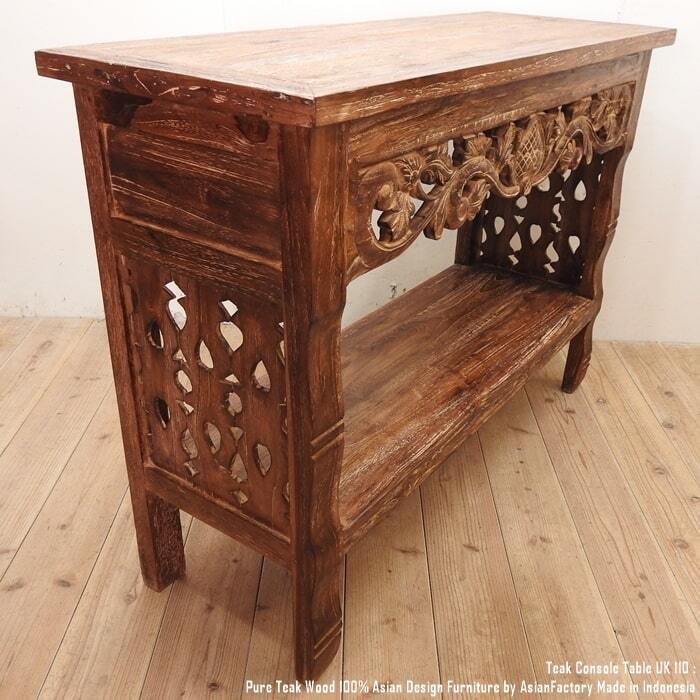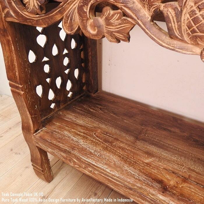 オールドチーク無垢材 コンソールテーブル UK110NR 彫刻付き 飾り棚 幅110cm 奥行40cm 高さ80cm