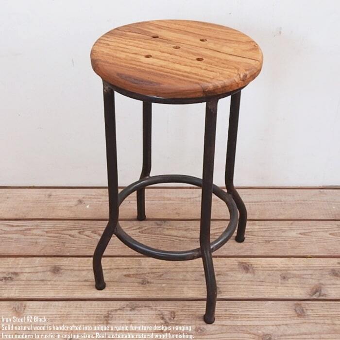 チーク材とアイアンのスツール アンティークブラック アンティーク風 アジアン家具 椅子 木製いす 天然木イス モダンアジアン 完成品 バリ家具